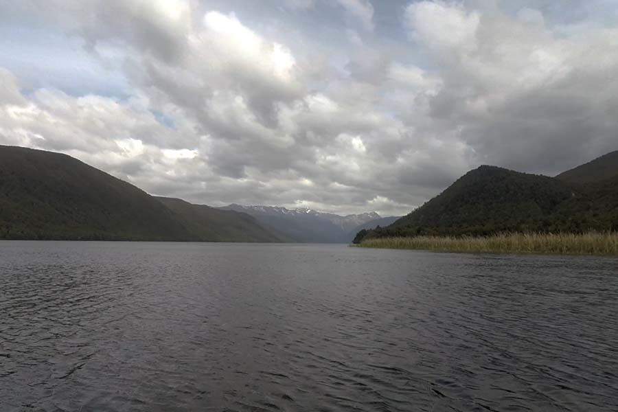 Nous prenons ensuite la route pour la côte ouest et nous nous arrêtons au lac Rotoroa où nous prévoyons de faire du canoë. La route dans les terres est vraiment belle, cela change de la côte, le soleil est de sortie pour une fois, et il n'y a pas de vent donc tout semble parfait pour une super journée canoë sur le lac ! Nous arrivons tout contents au bord de l'immense lac, sortant de quoi pique niquer mais comprenons vite notre erreur...l'endroit est infesté de sandflies, ces petites mouches qui piquent et qui font passer les moustiques que nous connaissons en Europe pour des enfants de chœurs !! Les abords du lac en sont littéralement infestés, les quelques minutes où nous avons ouvert le coffre a suffit a en faire rentré quelques milliers dans le van...il est impossible de rester sur place, ni de pique niquer pour le coup...